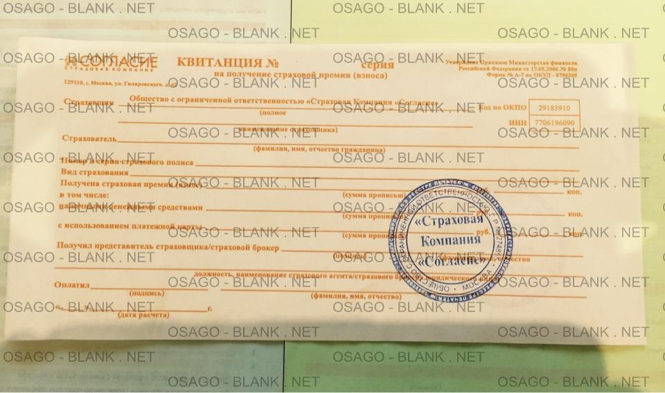 | Бланк КАСКО Согласие лицевая сторона | Квитанция к бланку КАСКО |