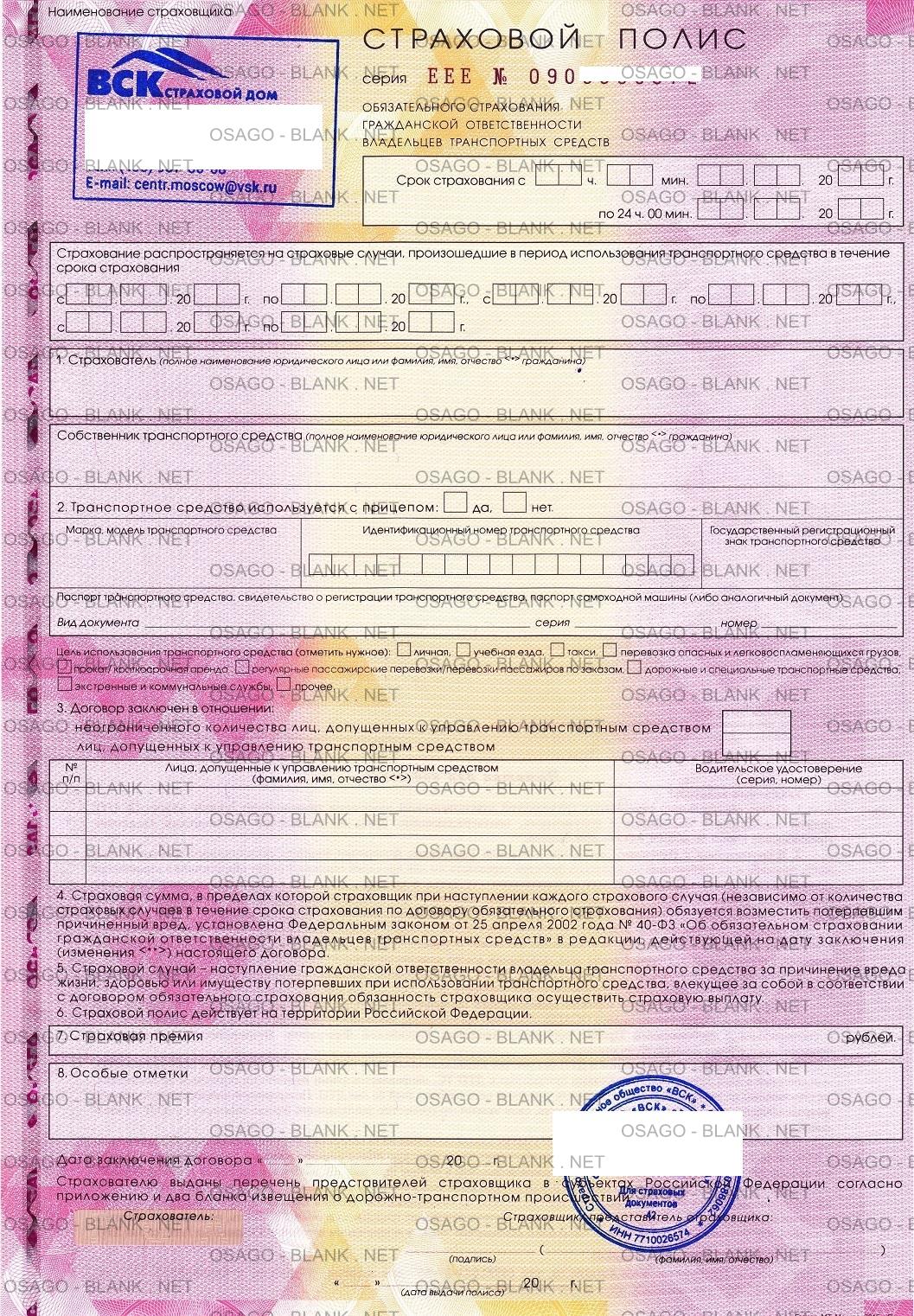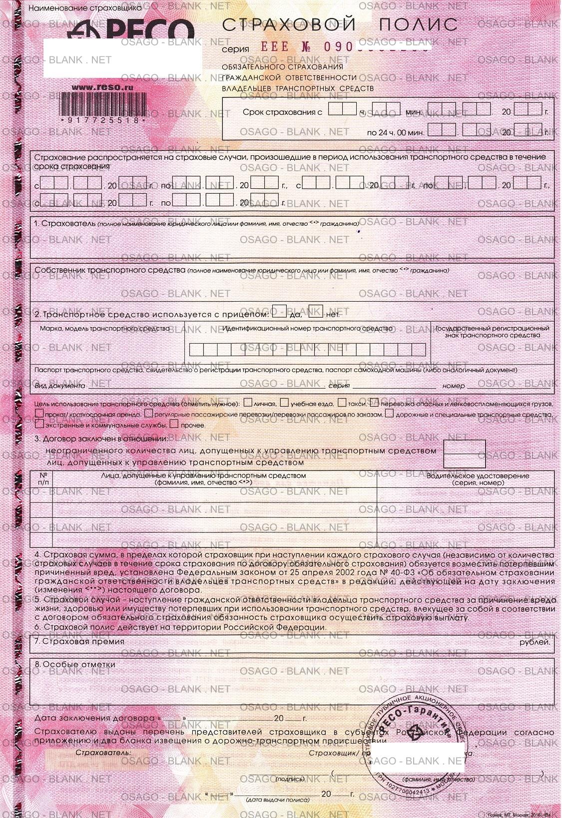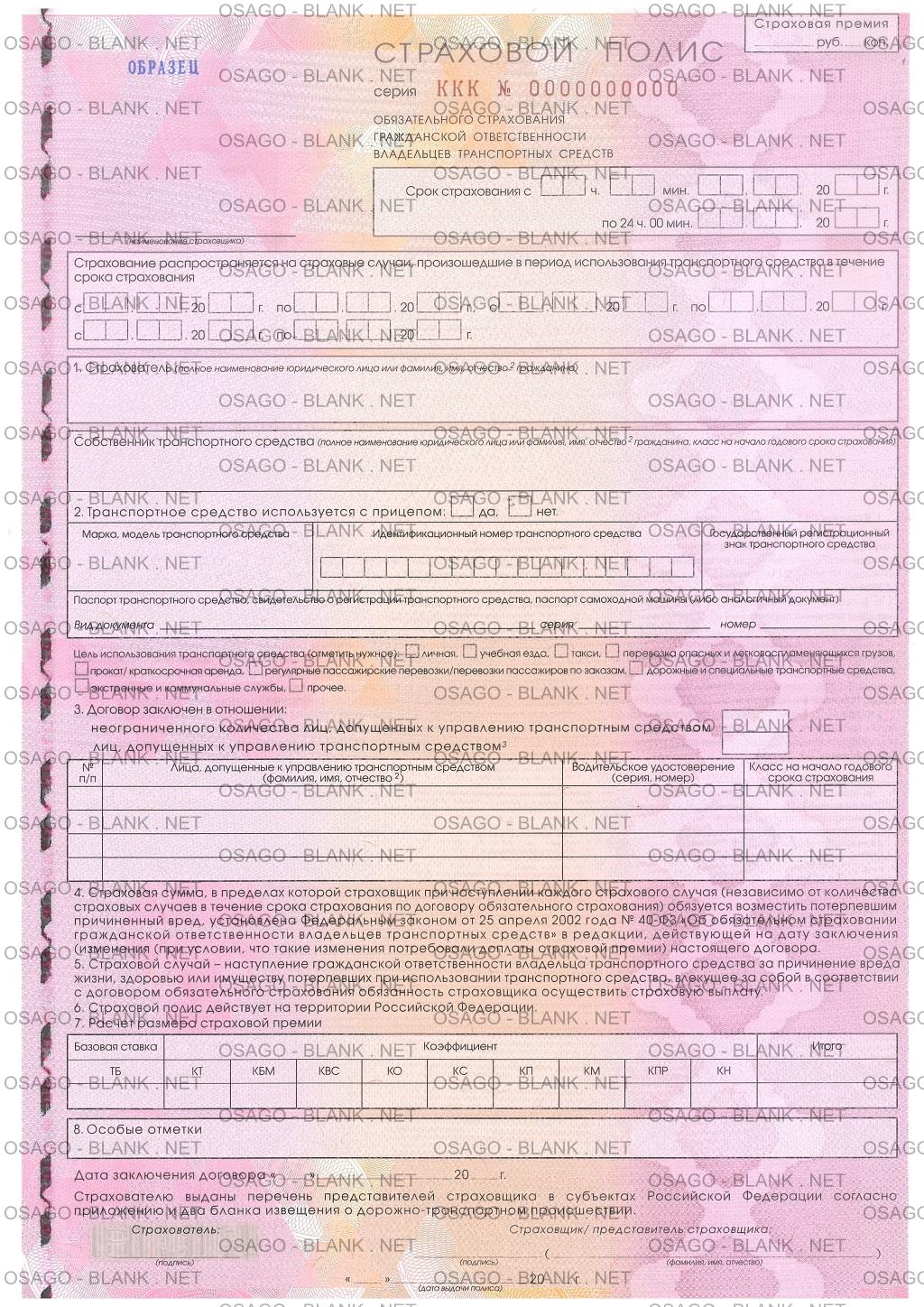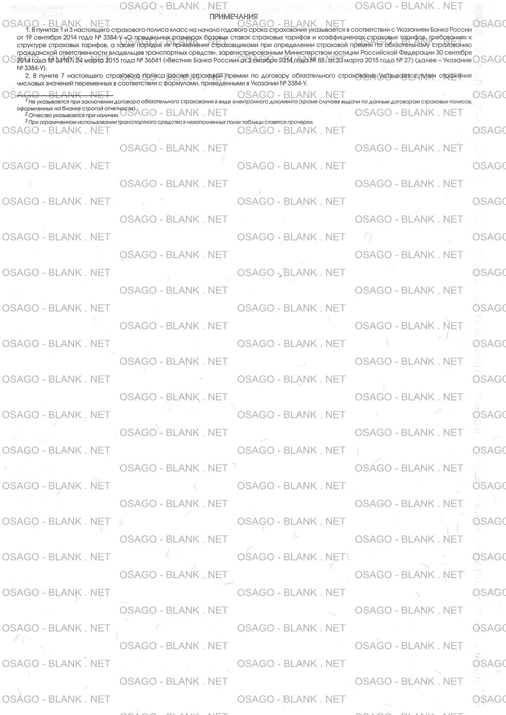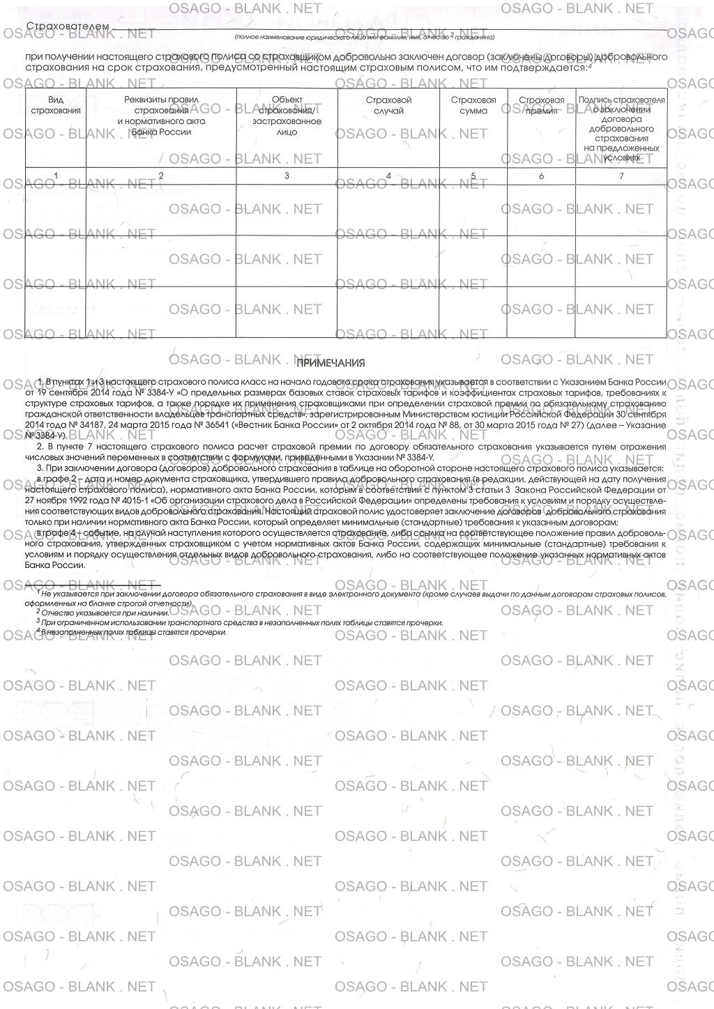 | Бланк ОСАГО образца 2018 года серии ККК (лицевая сторона) | Бланк ОСАГО образца 2018 года серии ККК (оборотная сторона) |