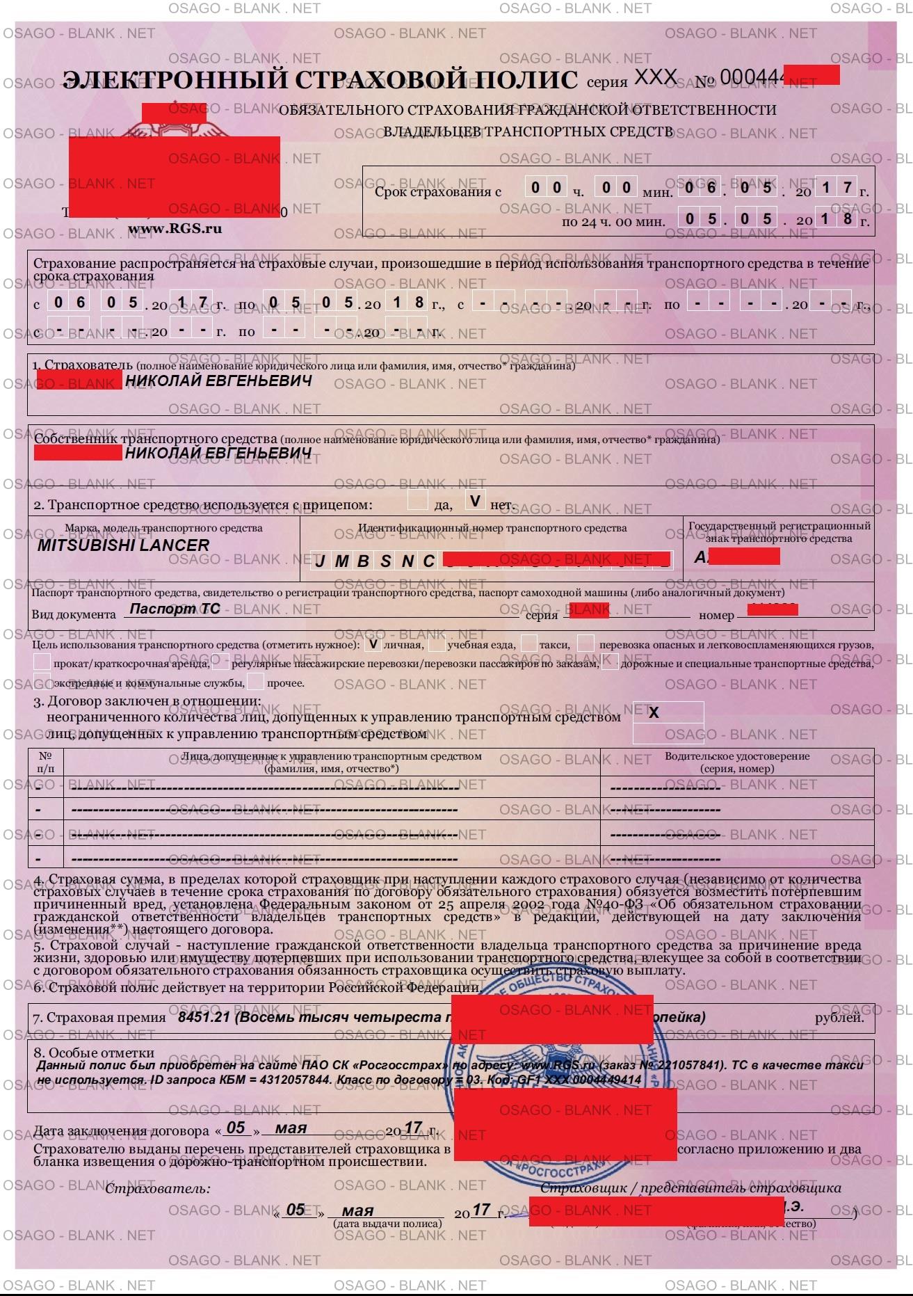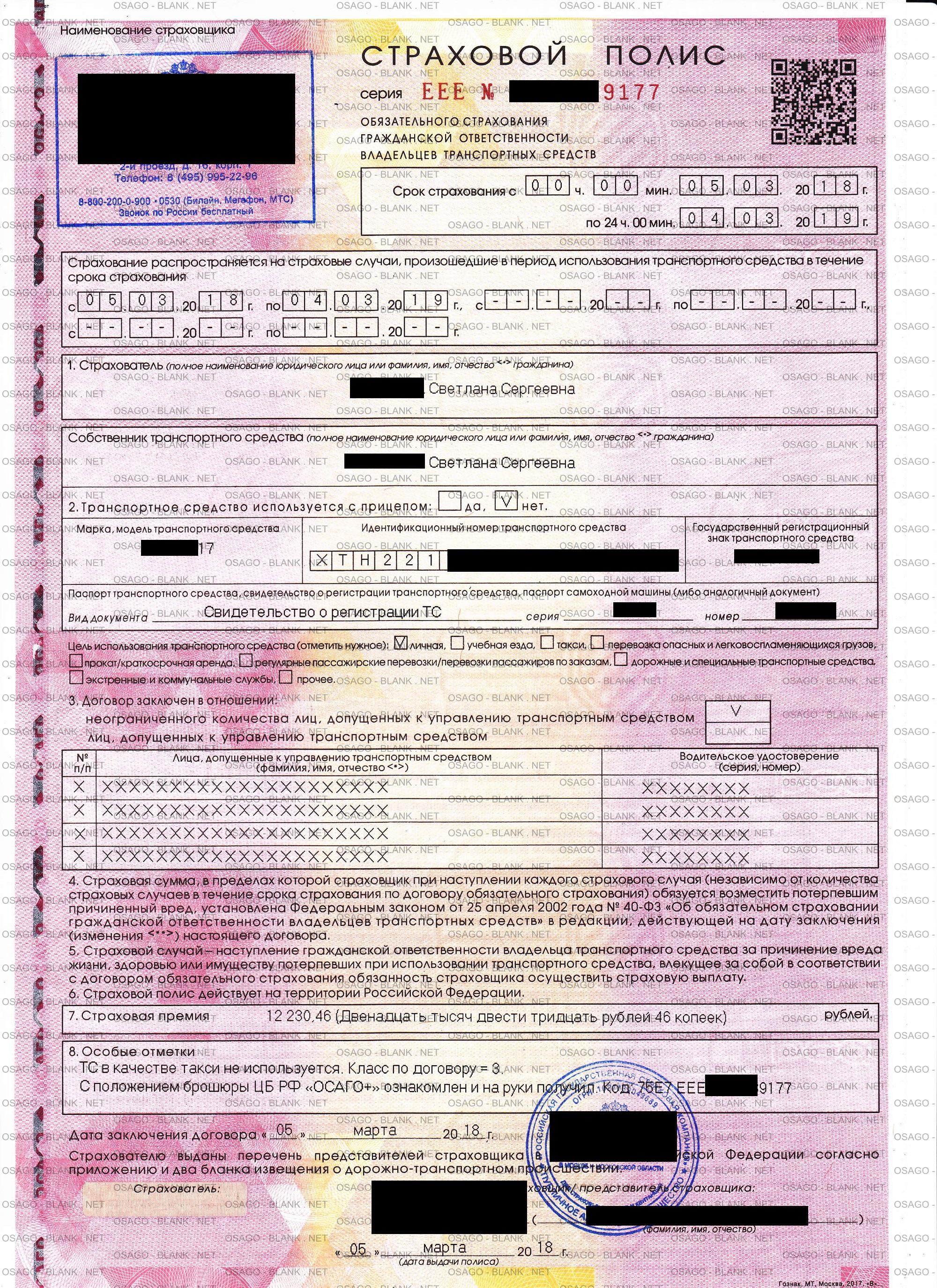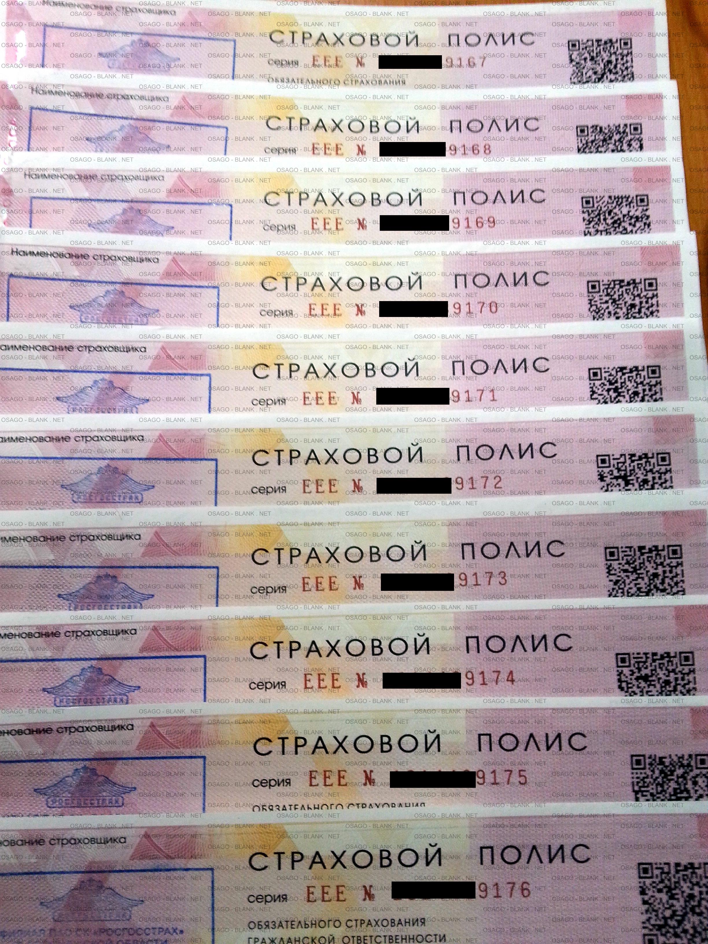 | Бланки ОСАГО с номерами, печатями и QR-кодами | Бланк ОСАГО заполненный, полностью готовый |