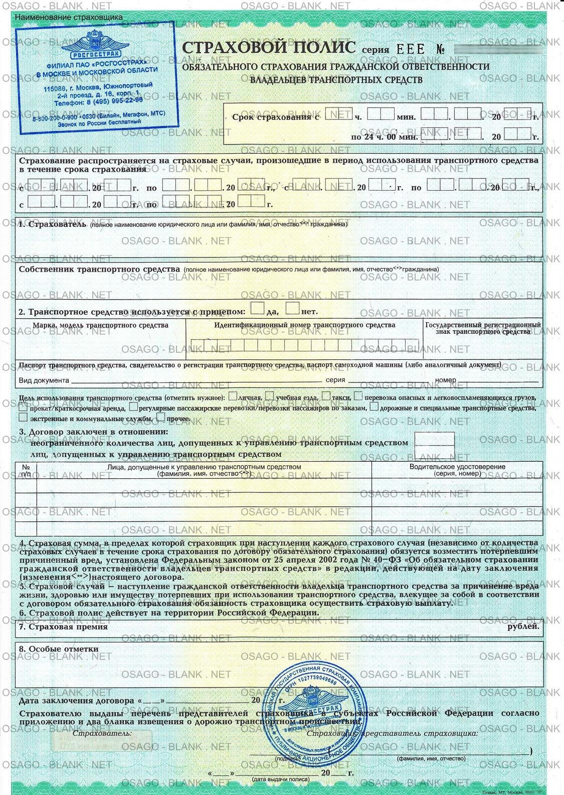 | Бланк ОСАГО образца 2018 года серии MMM (лицевая сторона) | Бланк ОСАГО образца 2018 года серии MMM (оборотная сторона) |