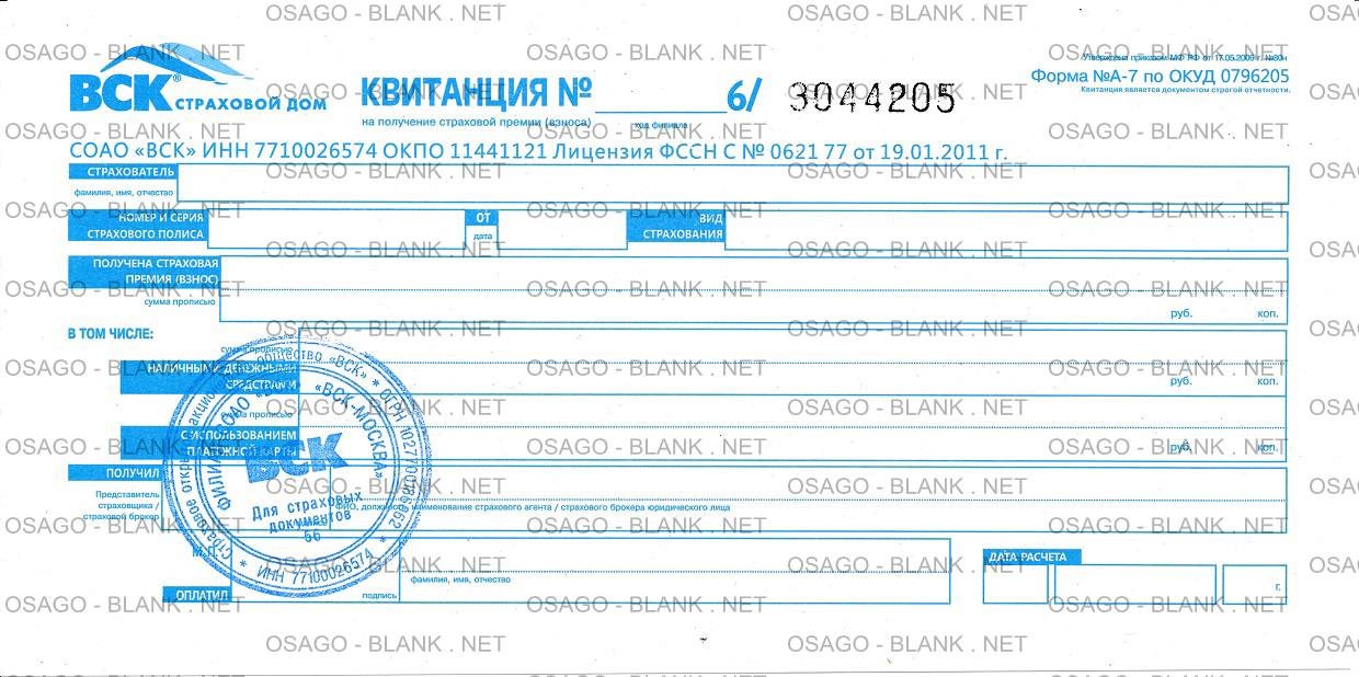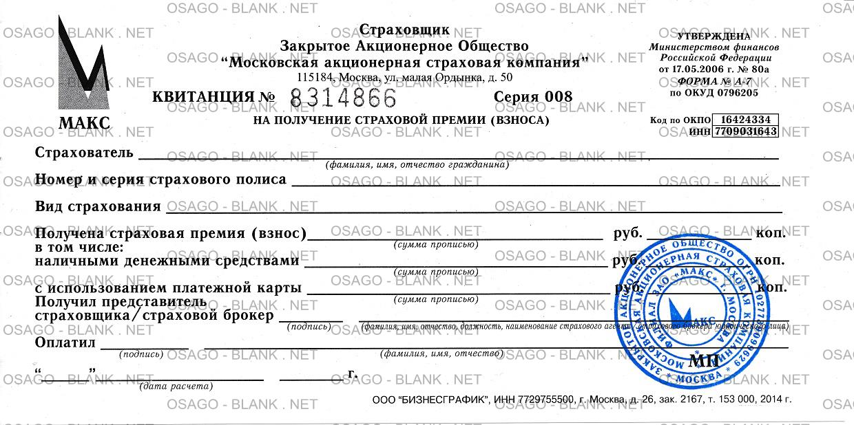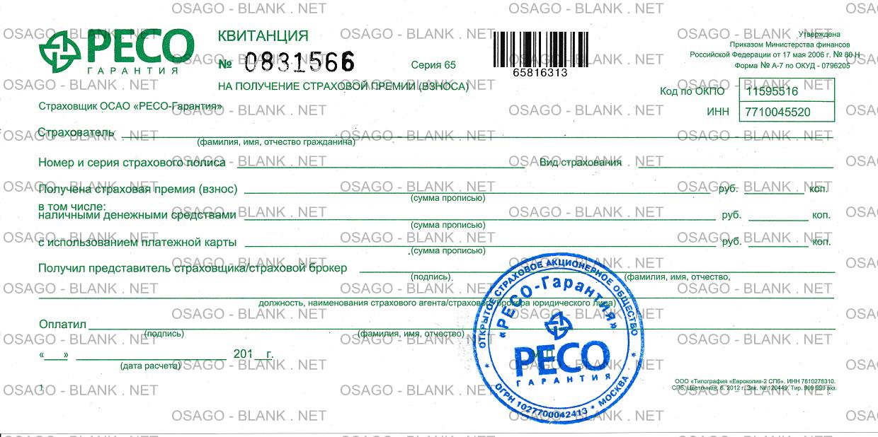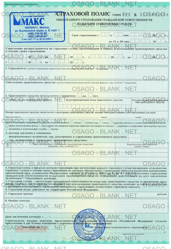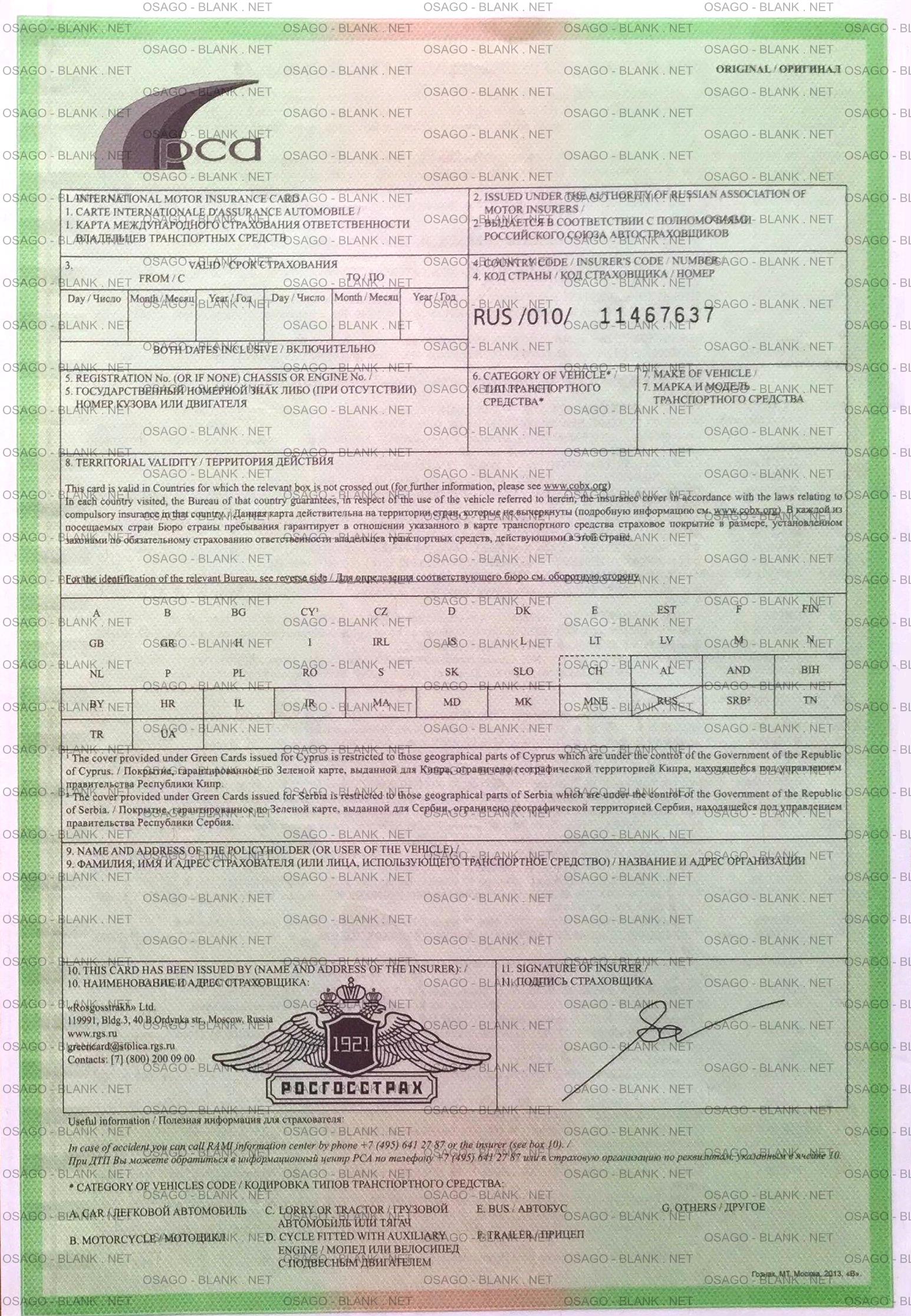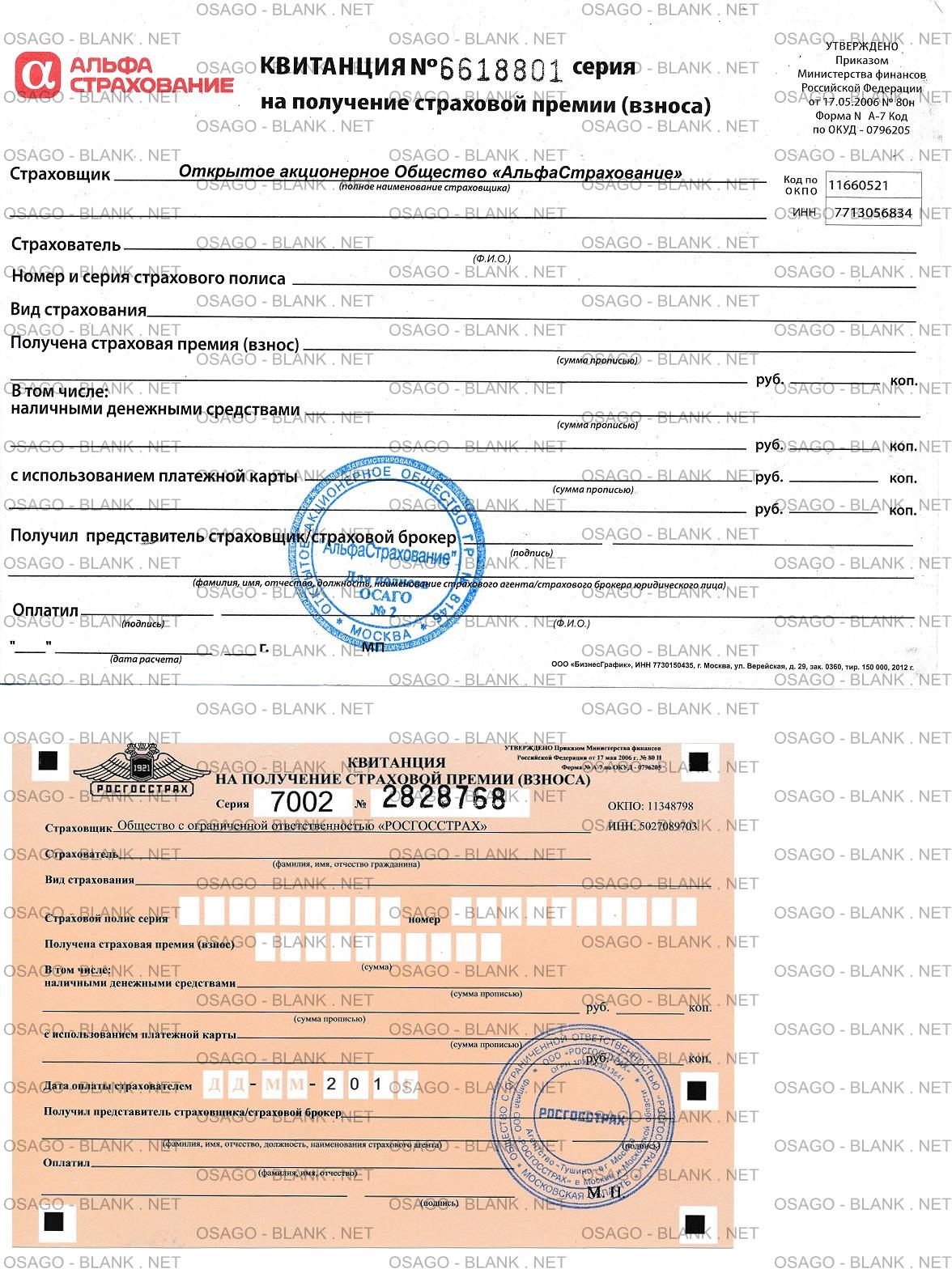Образцы бланков ОСАГО, КАСКО, GREENCARD с печатями, квитанций,