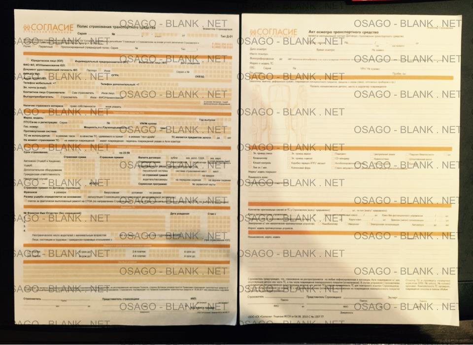 | Бланк КАСКО Согласие и акт осмотра | Квитанция к бланку КАСКО Согласие |